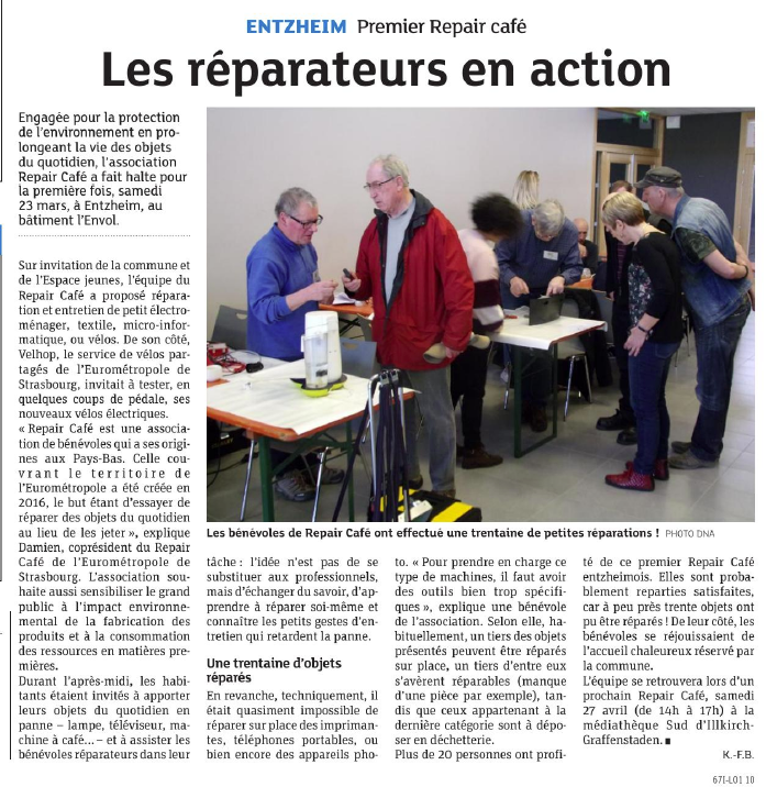 | DNA Saverne | Jan 2020 | Bel article sur les activités Repair Café |